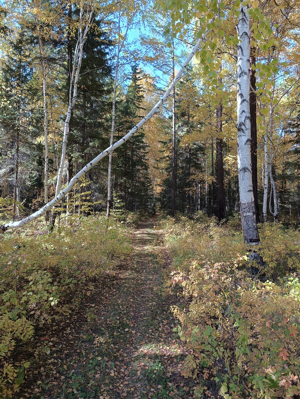 Поход в смешанный лес, где кроме сосен и пихт есть березки и осинки. Спуск по северному склону с видом на южный склон соседней (северной) горы. Есть мнение, что медведи любят рыть берлоги на северных склонах.